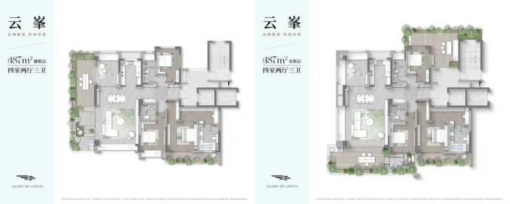 主力户型:【云逸】108㎡、【云汀】129㎡、【云岫】146㎡、【云峯】187㎡