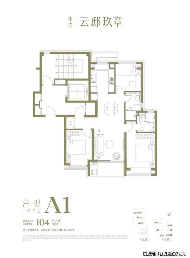 中海·云邸玖章分为南北两区、三个地块。