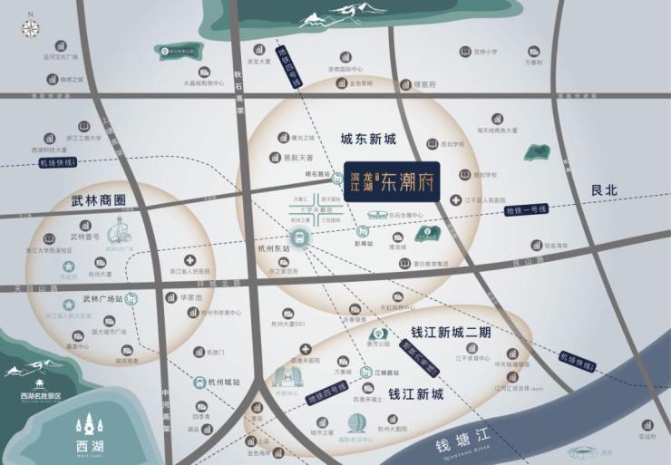 “中国•杭州交通商务会客厅”光环,“一街一中心”为代表的城市综合配套,加持了东潮府的城市魅力生活。