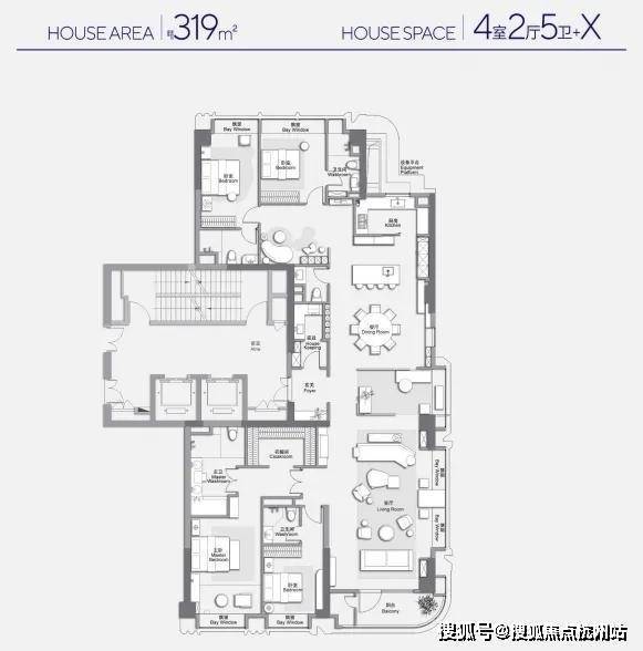 项目建面约319㎡户型过程稿,以开发商实际发布为准