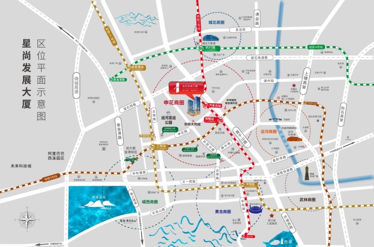 星尚发展大厦位于与钱江新城、武林广场并肩的杭州三大豪宅区之一的申花板块。汇聚着大量高新产业,是杭州高精尖人群密度较高的区域之一,区域内拥有城北软件园、智慧网谷小镇(规划中),运河财富小镇、上塘电商小镇、工业设计小镇、汽车互联网小镇等十大产业集群引领申花产业变革,板块价值一路攀升。