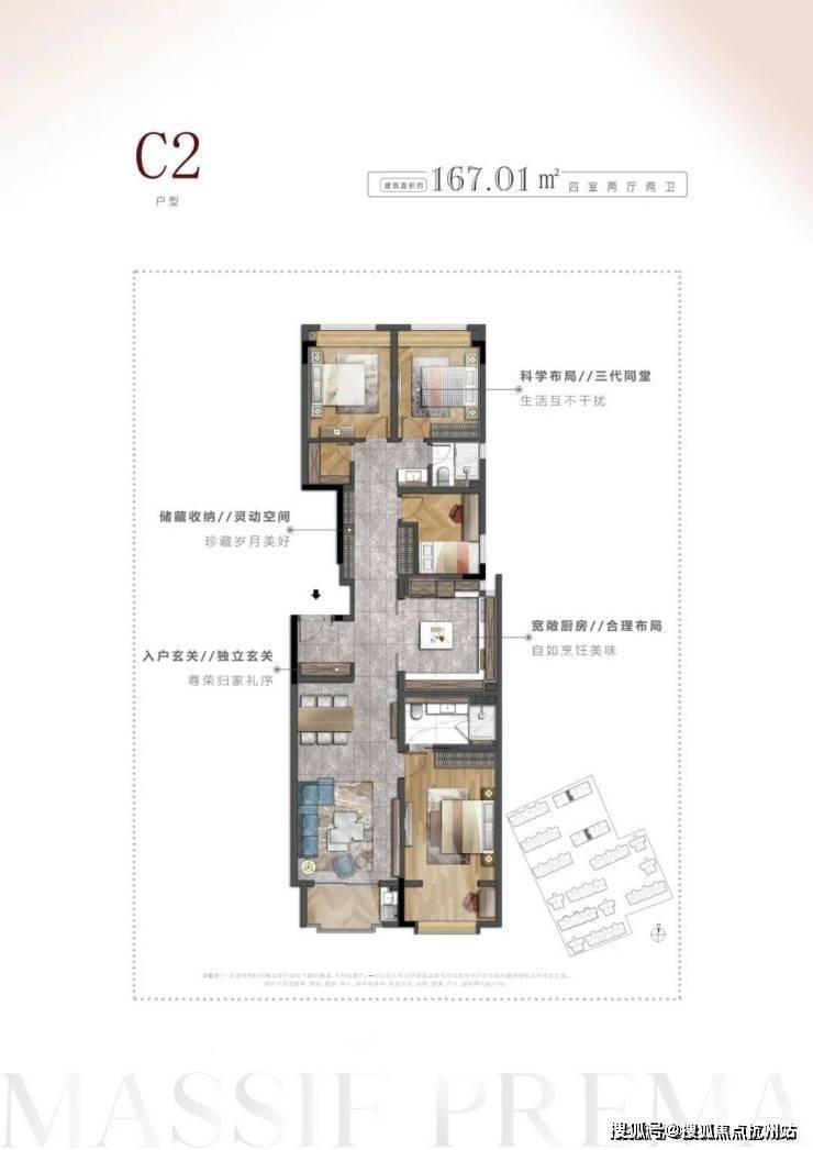 面积约167.01㎡4室2厅2卫▼