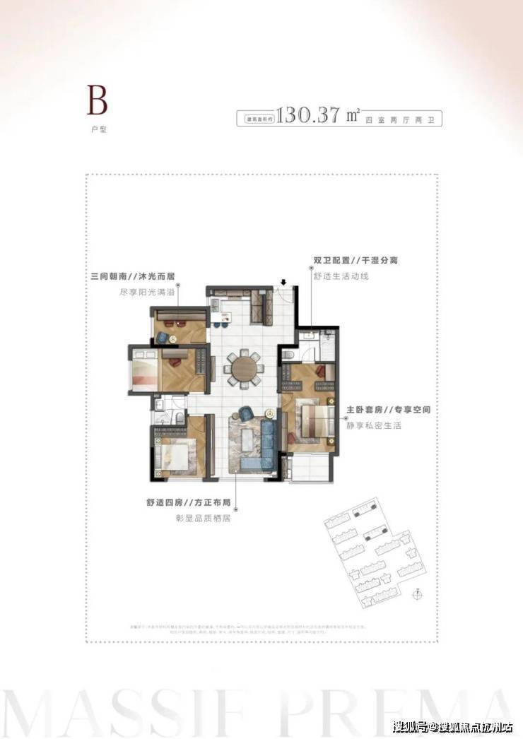 面积约130.37㎡4室2厅2卫▼