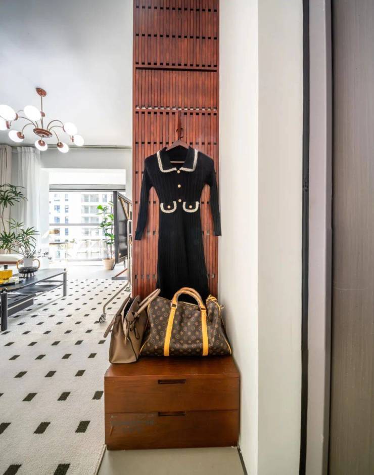 玄关衣帽架以钢琴键式的设计,轻松收纳家人的外衣与饰品。这种设计不仅美观,而且实用,能够最大限度地利用空间,同时保持玄关的整洁与秩序。