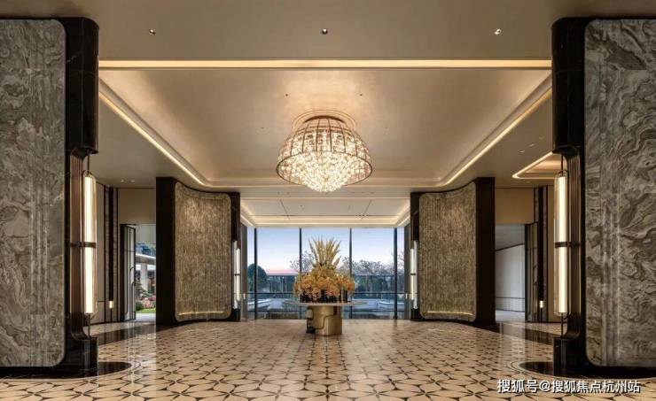 而且在用料上,别的项目还在拼石材的时候,锦上观澜已经跨级展示了,用的都是奢石甚至是进口玉石来铺装。比如地面是卡里冰玉(非洲)铺装,墙面是皇家白玉(丹麦)铺装,整体质感温润高级,非常有气质。