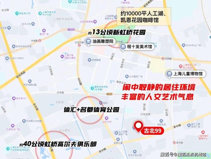 古北99落址闵行金虹桥、长宁古北、徐汇徐家汇三大核心区交汇之处,精准占位姚虹路99弄,扎根泛古北核心生活圈,不用等待规划落地,出门即享全维度成熟配套。