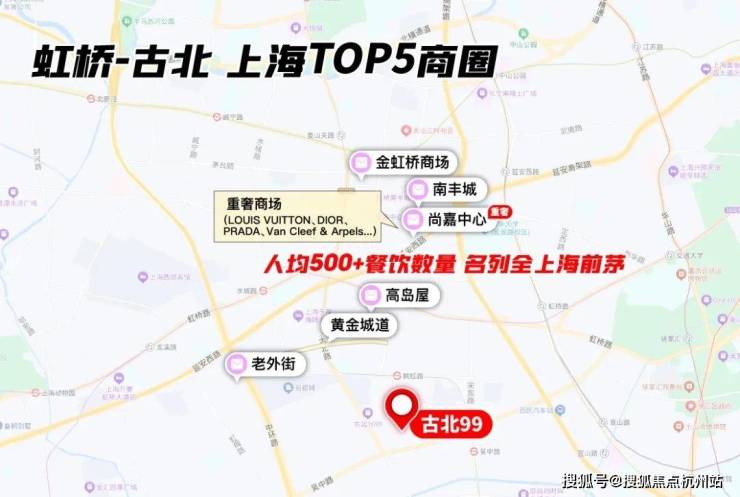 虹桥-古北一带人均500+餐饮达到80+家(作为对比,外滩和南京西路都是70+家),足见这个片区居民的消费力之强。(数据来源网络,仅供参考)
