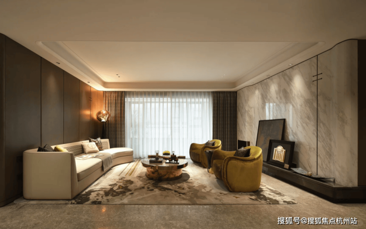 客餐厅、厨房、卫生间、阳台地面铺设的都是塞浦路斯灰天然大理石;电视背景墙一般项目都不交付,项目140㎡户型采用大块岩板。