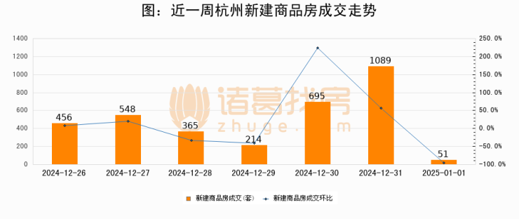 【杭州成交日报】01月01日新房成交51套、二手房25套;涨价房源15套