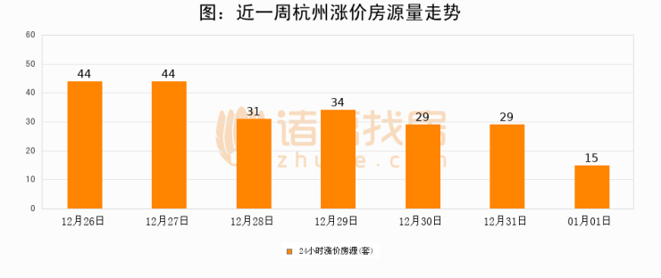 根据诸葛找房数据显示,杭州24小时涨价房源量为15套,较12月31日减少14套,环比下降48.3%。与此同时,涨价房源占比小幅回落,对于购房者来说是一个入市窗口期,购房者可抓住时机入市。