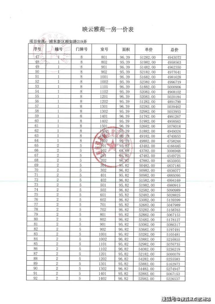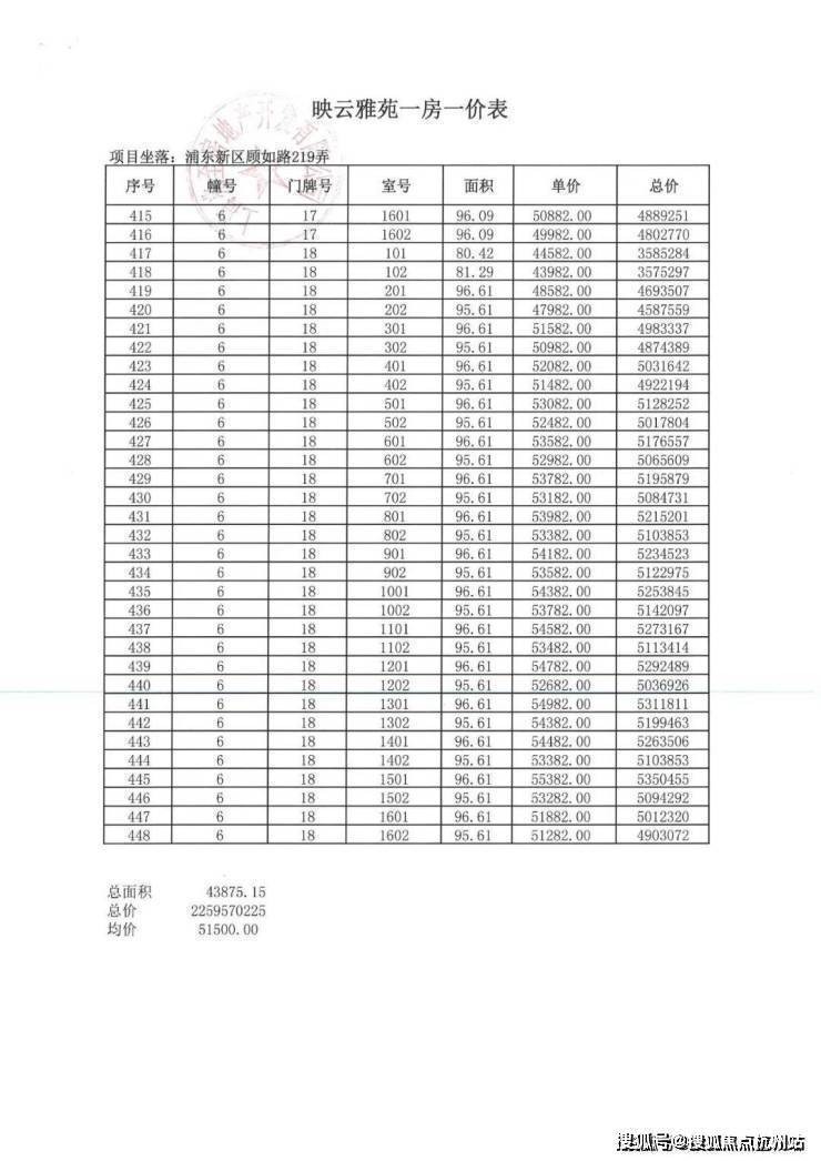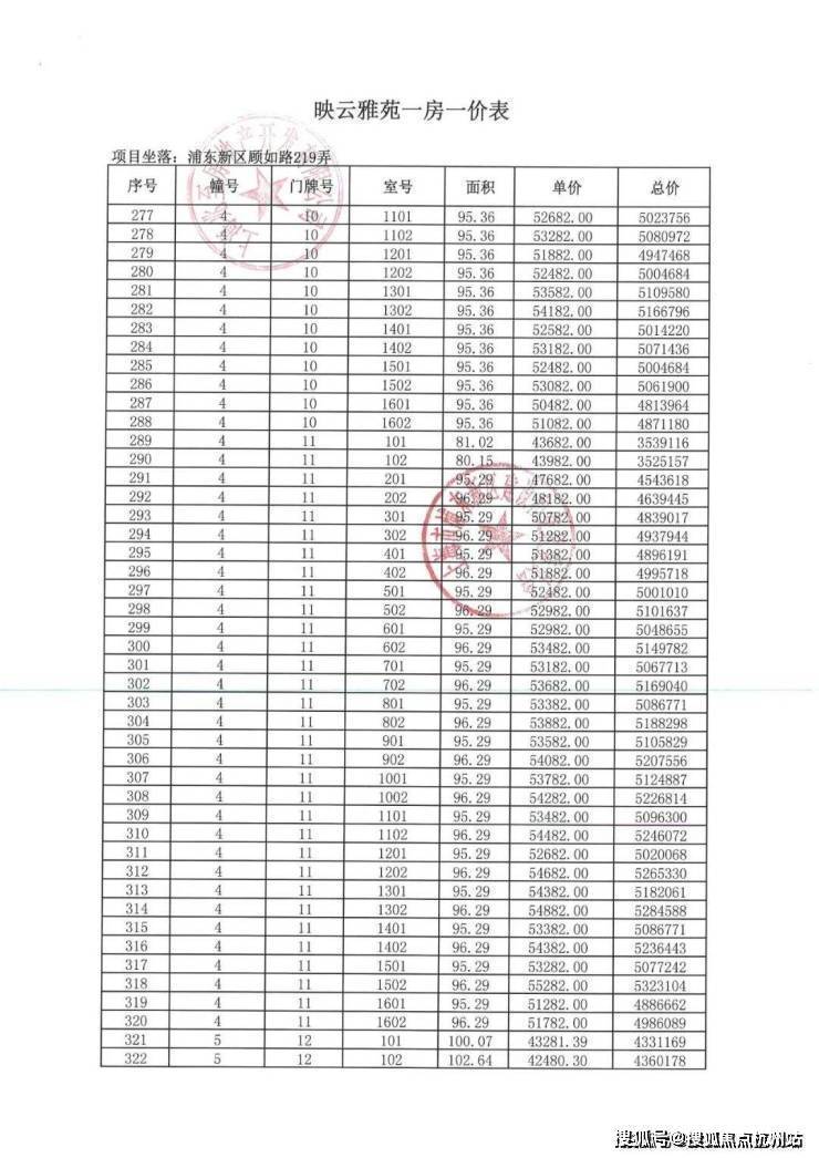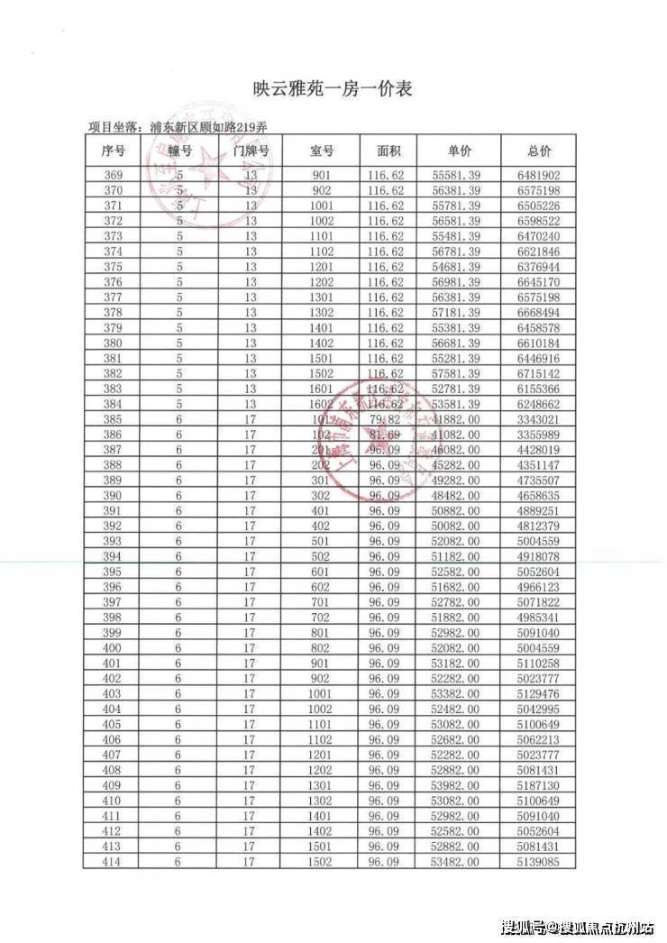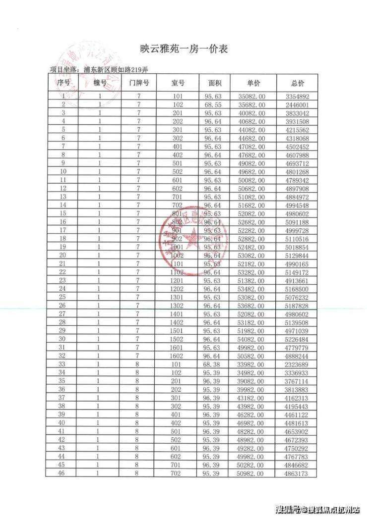 项目一房一价表▼