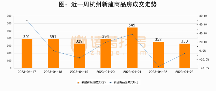 【杭州成交日报】04月23日新房成交330套、二手房247套;涨价房源126套