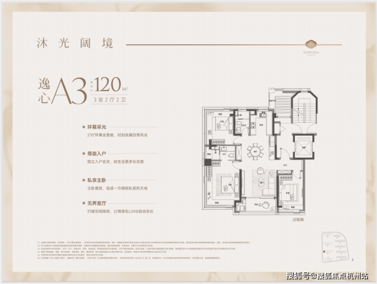 建面约120㎡3房2厅2卫▼