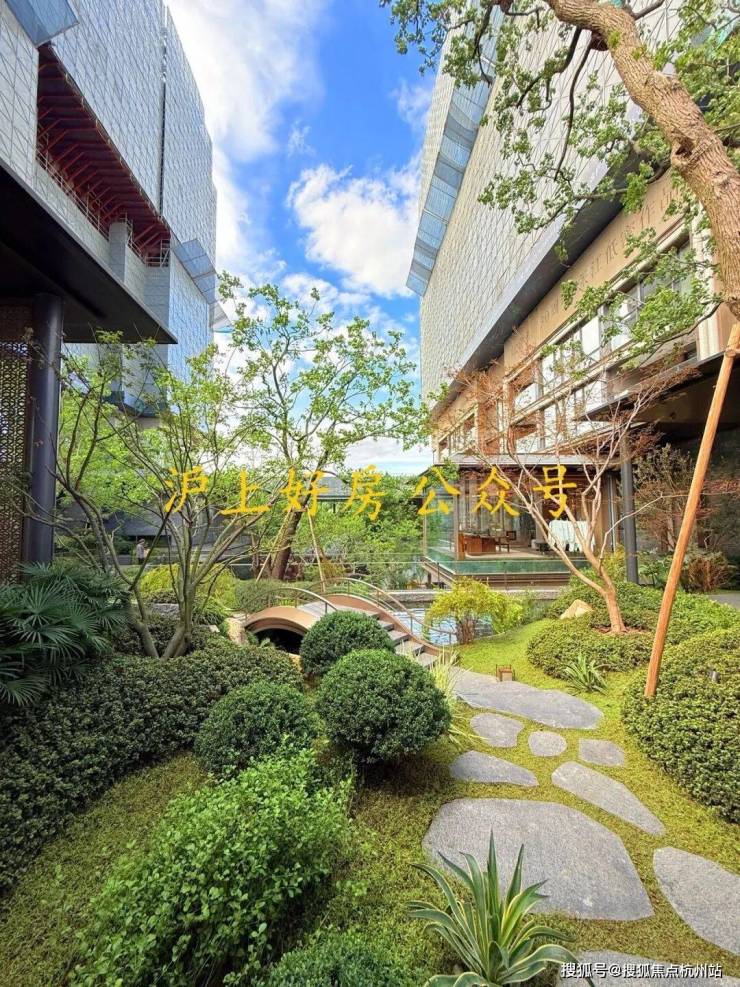 沿风雨连廊漫步,耳畔是流水淙淙,眼前是叠石苍松。 约460㎡下沉庭院 不像景观,更像一幅您就在其中的立体宋画,一草一木,都可触摸、可对话。