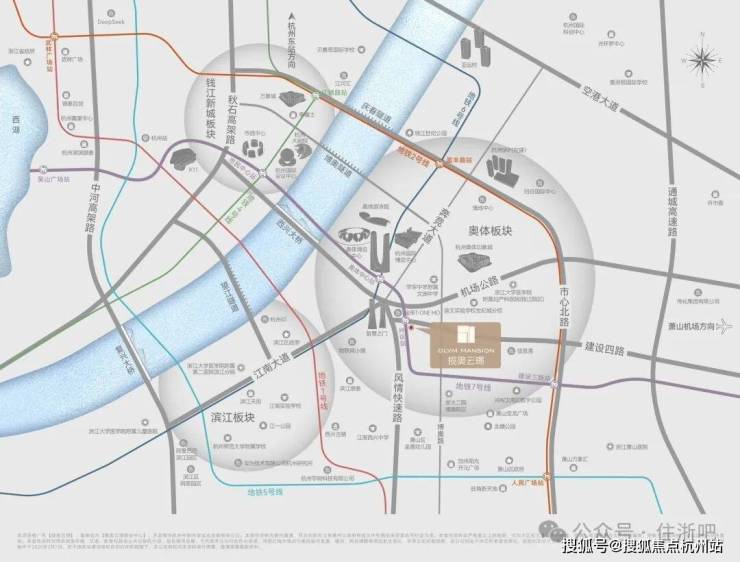 周边大小“莲花碗”、T - ONEMO(在建)、奥体中心、奥体印象城、滨江银泰城、杭州 SKP(在建)等地标建筑星罗棋布,构建起一个资源高度聚集的城市封面区域。同时,项目往西约200米便是重要交通干道风情大道,依托三横两纵的便捷路网,能够快速通达滨江区政府、万象城、来福士、市民中心等城市关键节点,交通优势显著。在建筑规划上,香港华艺设计,将“修竹与叠石”的东方审美精粹与世界前沿美学的大幅玻璃幕墙完美融合。垂直向上挺拔建筑线条、流光熠熠的瀑布曲面屏立面、多维联接的开放式商业裙楼,让项目在矜贵美学外,拥有广袤的文化纵深感。在居住品质打造方面,揽奥云璟精心打造全维配置的高端会所。会所内设有云跃健身房、云柔瑜伽馆、云趣童梦园、云璟会客厅、云栖私享厅、云弈棋牌室、云沁品茗室、云逸酒廊等高定云端八境。