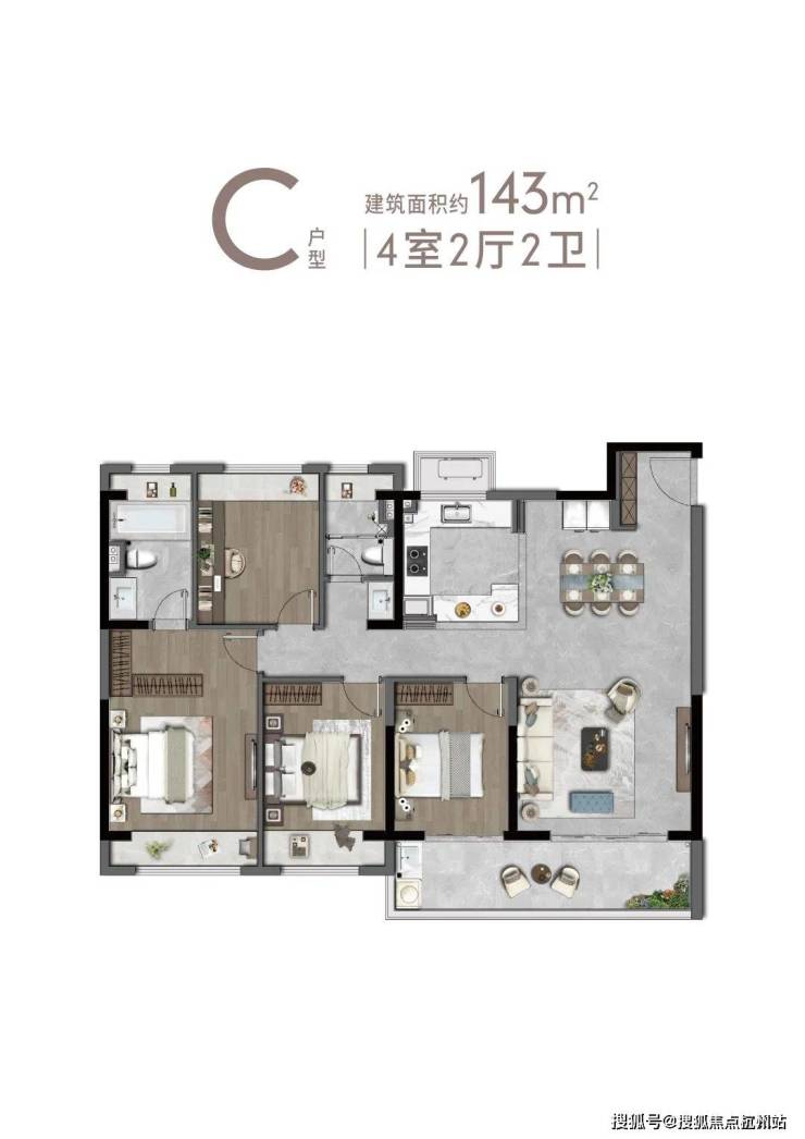 C户型143㎡4-2-2
