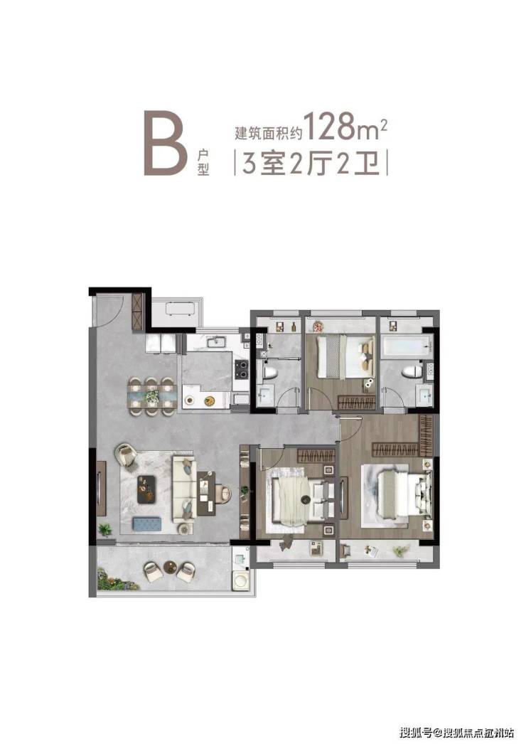 B户型128㎡3-2-2