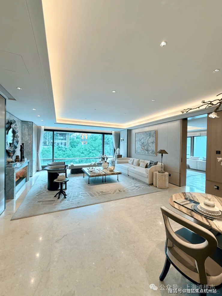 墙面,严选安第斯雪或晓山青珍贵石材,与木饰面、特色定制墙布组合设计;客厅、餐厅、卫生间等区域地面定制石材,赤足走过,温润细腻的触感。