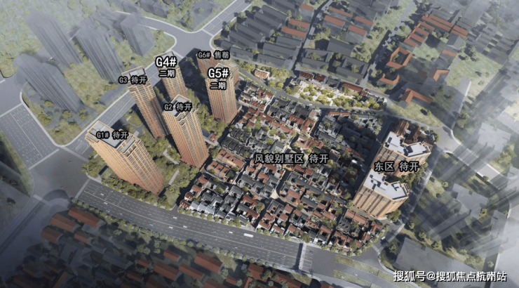 项目主要分两个地块,西区G地块主打新建高层住宅,总计六幢,夹杂了4套保留改建的别墅产品。