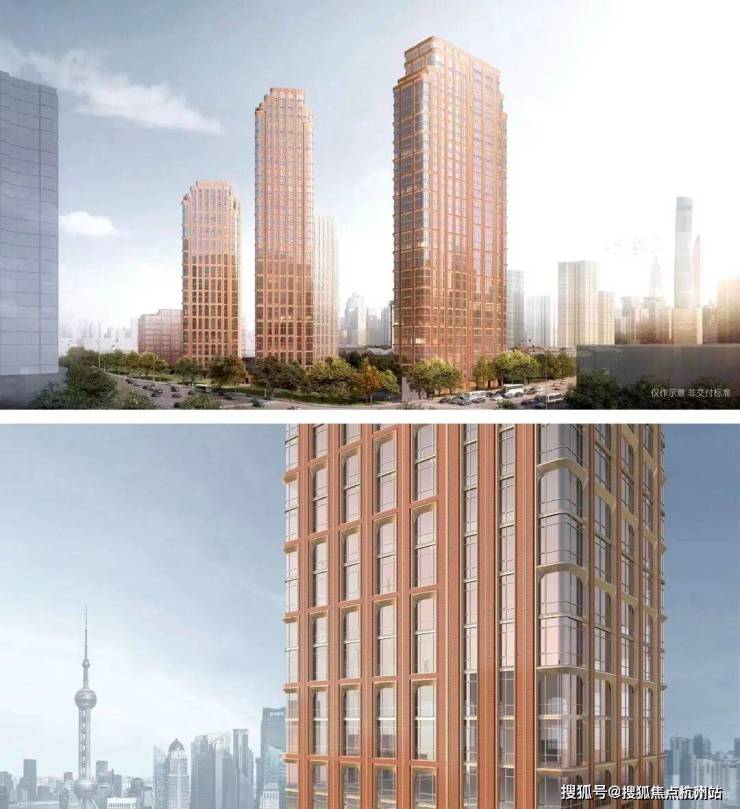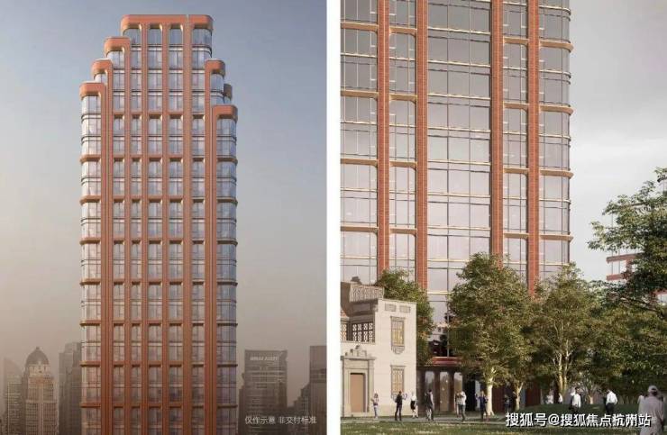 整个建筑的外立面将经典的Art Deco立面风格与海派文化相结合,用Art Deco常用的竖向线条来解决高层建筑的挺拔感、用红色陶板来勾勒出海派老洋房的红砖意象,呼应历史、但又符合现代人高级审美。