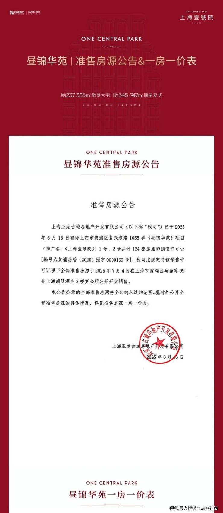 一批次:推出6号楼33套房源,均价约17万/㎡,面积约267-909㎡,开盘售罄