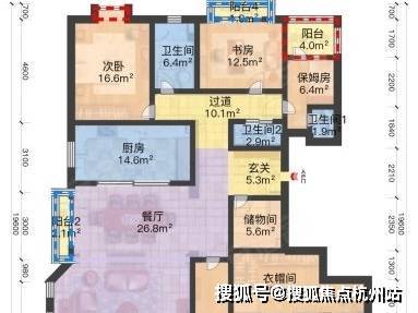 亮点:全屋飘窗,空间可变性强;主卧套房带独立卫浴、步入式衣帽间、观景飘窗与私人书房,双次卧均带独立卫浴,适配三口之家或二孩家庭,得房率约 84%。