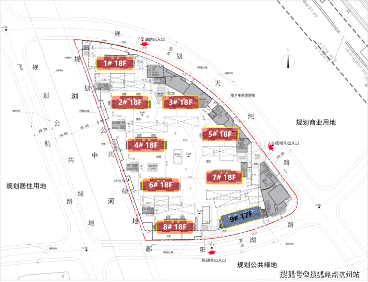 普通商品房用地, 用地面积约39769㎡,容积率2.2,限高60米; 据规划显示,规划12栋可售住宅,总高17-18层,总户数约901套, 容积率2.2,非人车分流,车位比约1:1.2。
