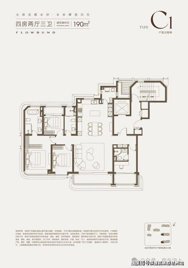 190㎡四房:L形布局,江景视野好但动线稍紧凑。