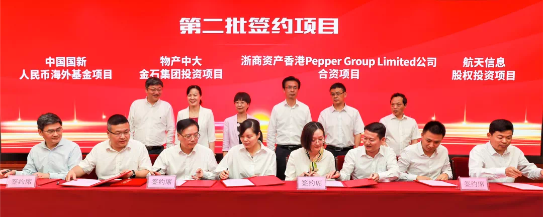 现场,35个重大项目参加签约仪式,总投资190.3亿元。其中,包括了一批央企、跨国公司、独角兽等总部项目,如:国家能源集团电力项目,双招双引的海内外双博士人才项目至朗科技项目,新基建产业独角兽、小米百度联想生态企业凌迪数字科技总部项目等;金融服务产业代表性项目,如:中国国新人民币海外基金项目、浙商资产香港Pepper GroupLimited公司合资项目等;新消费产业代表性项目,如:物美华东总部、奥康集团供应链电商平台总部项目、联华华商新零售总部项目等;数字经济产业代表性项目,如:德勤阿里云全球事业部项目、“一带一路”芬兰雅威科技项目等;文化创意产业代表性项目,如省文投浙文影业项目。