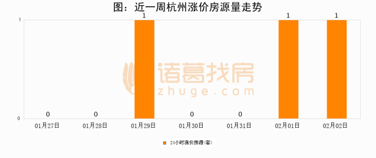 根据诸葛找房数据显示,杭州24小时涨价房源量为1套,较02月01日持平。