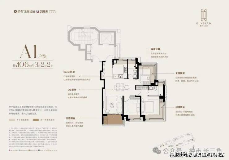 东1#边套: 全屋飘窗+约270°的转角飘窗, 实际空间感十分优秀!