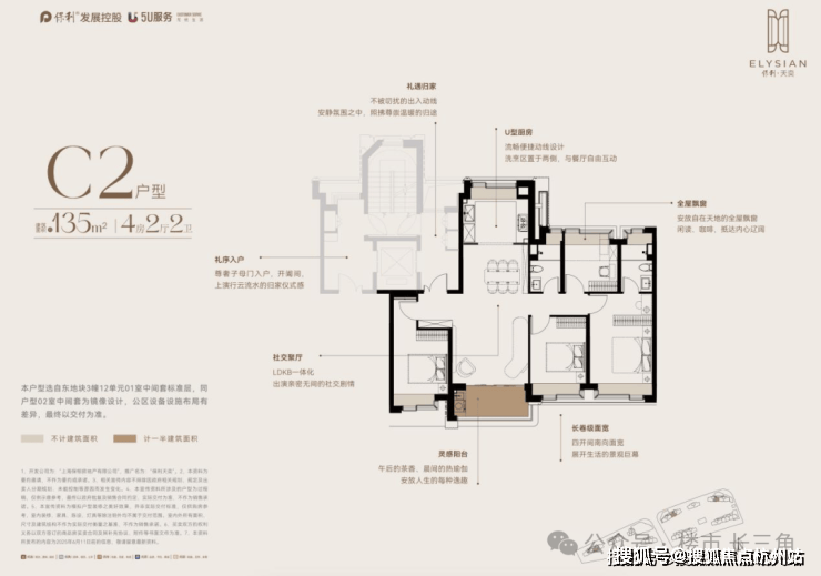 建面约135m²户型, 在1100万级四房中,不仅拥有LDKB超宽客餐厅还拥有极致改善尺度!