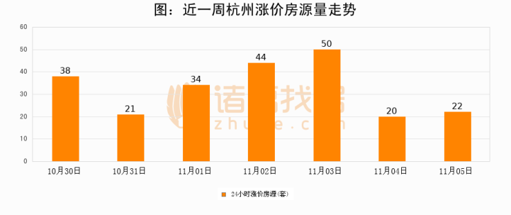 根据诸葛找房数据显示,杭州24小时涨价房源量为22套,较11月04日增加2套,环比上涨10%。与此同时,涨价房源占比小幅扩大,业主信心有所提升。