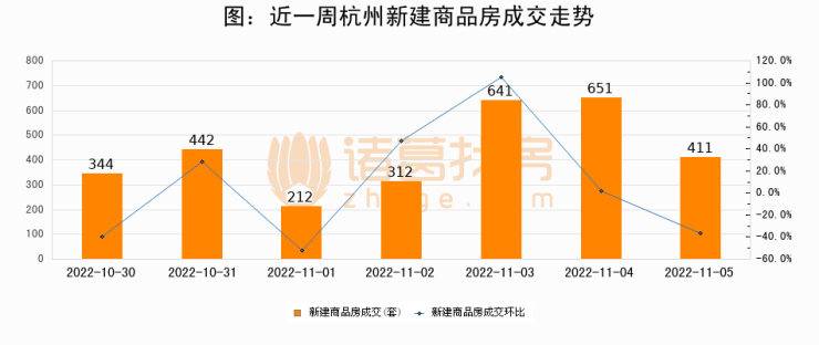 【杭州成交日报】11月05日新房成交411套、二手房131套;涨价房源22套