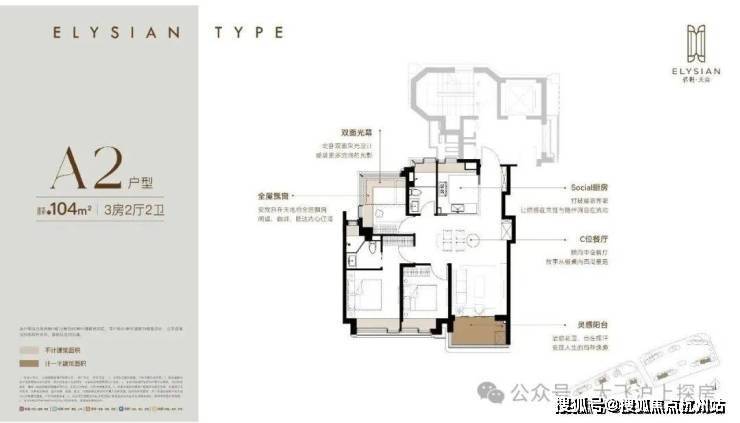 约104m²三房两厅两卫(A2户型)