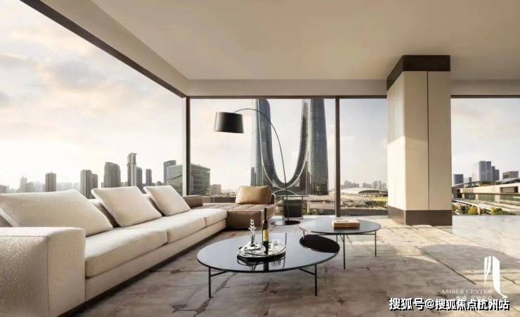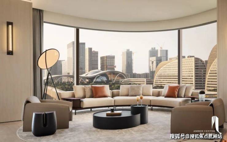 270度“無柱轉角落地客廳”站在Amber98的樣闆間,奧體地標杭州之門近在咫尺,仿佛每一個建築細節都觸手可及。
