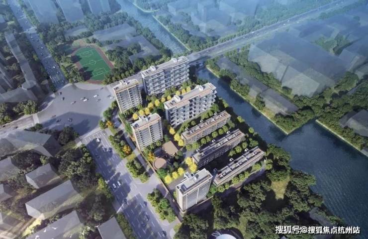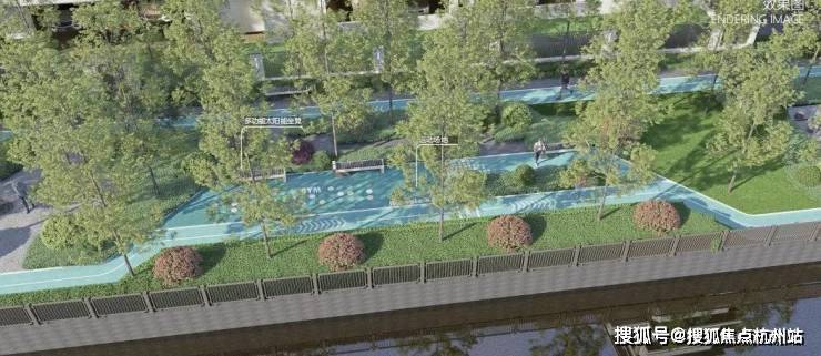 除了内部景观外,项目还借景古塘河,为业主打造 约2600㎡水岸公园 ,含水杉树阵、绿地草坪、400米跑道及健身设施等。