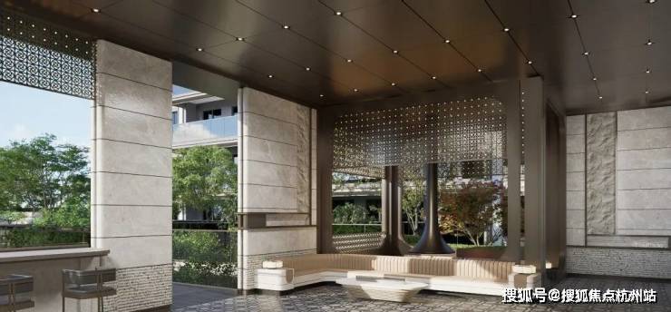 此外,项目借助地势高低差,打造了 下沉庭院会所 ,集茶室、健身房、会客厅等多功能空间于一体,呈现“三维立体景观”。