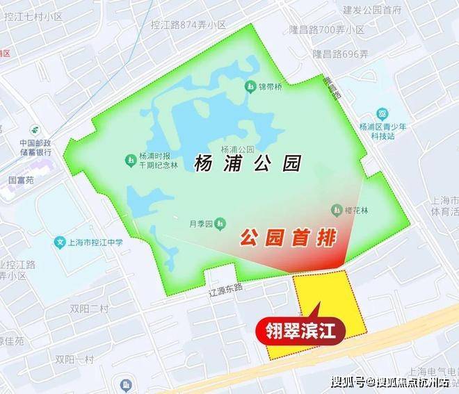 项目距离约22万方的杨浦公园只隔了一条辽源东路,几乎算得上是公园首排。