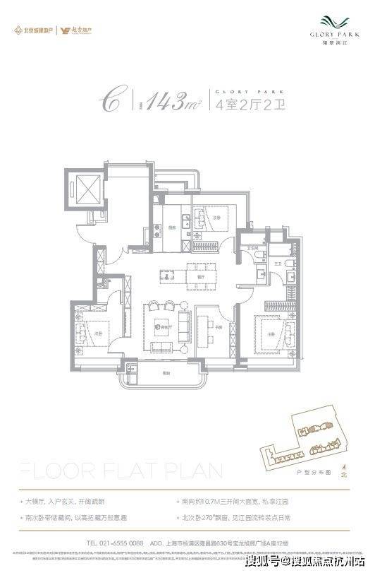 进门前独立电梯厅,进门后独立玄关;户型交付是4房,如果做成3房那么你将得到一个约6.9米宽的大横厅;