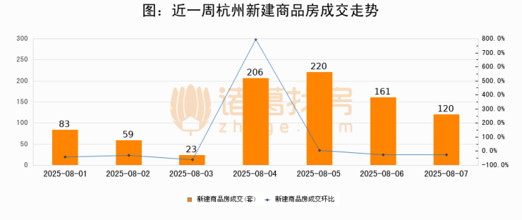 【杭州成交日报】08月07日新房成交120套、二手房164套;涨价房源19套