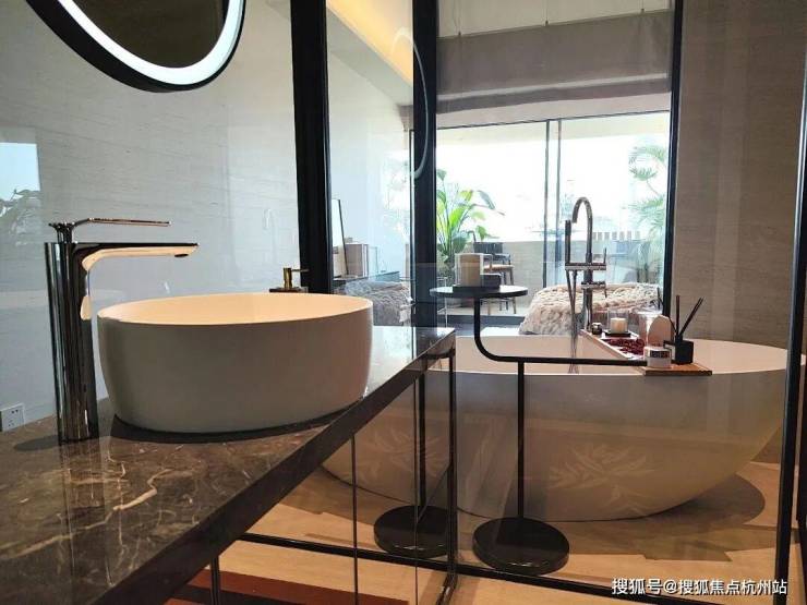 高端装修:全屋配备中央空调和地暖,进户门为豪宅定制铝铸门搭配智能指纹密码锁,墙面地面使用大理石,选用 Armani 真丝壁纸等众多高端品牌建材。