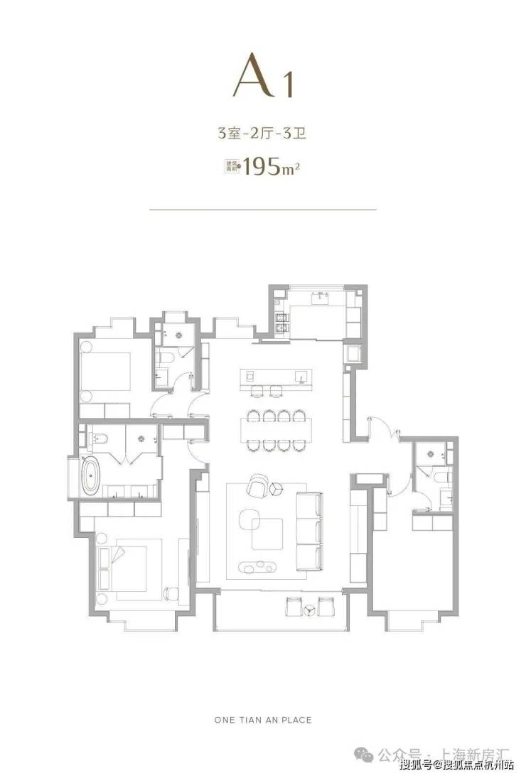 而另一个大户型175㎡,也几乎是195㎡的缩小版,同样三套房的设计保证了超强的舒适度。