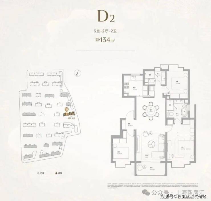 建面约134㎡3房,几乎可以看做是双套房的设计,尤其是主卧带浴缸和双台盆,保证了各个家庭成员的私密空间,适合一家三口的改善之选。