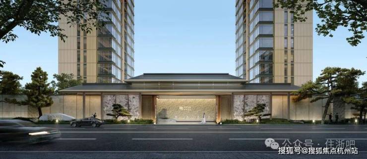 丨奢华社区主入口:萃取现代东方主义风格,以宋风门庭,构建隐奢与雅意兼具的豪宅门面,直观传递尊崇仪式感。