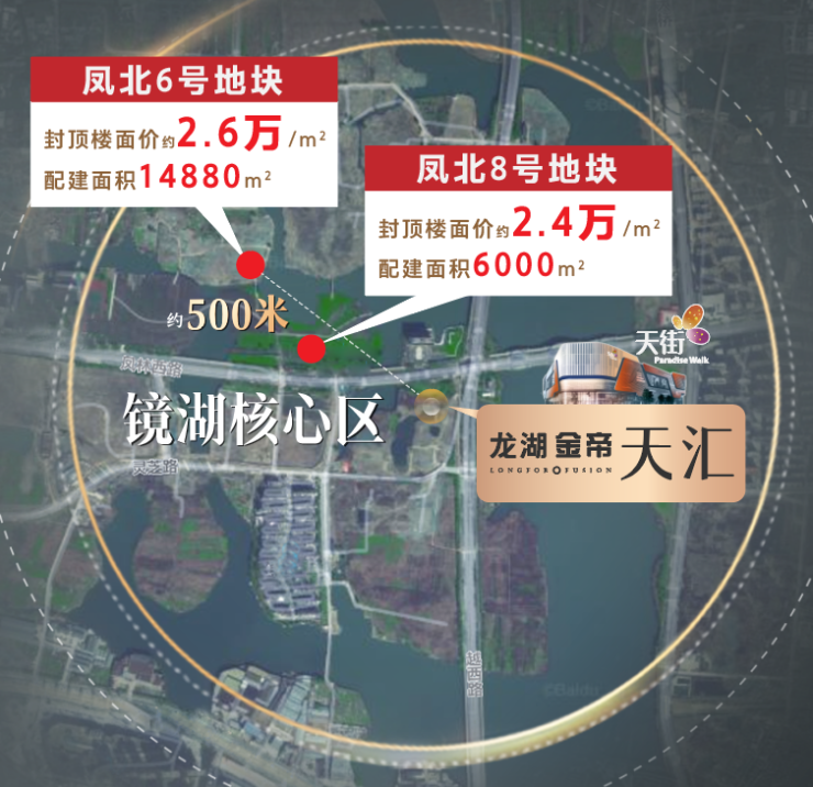 短短几天后,凤林西路以北6号地块再度封顶!以楼面价约2.6万/方,配建14880方成交,让本就燃爆的镜湖再添一把火。