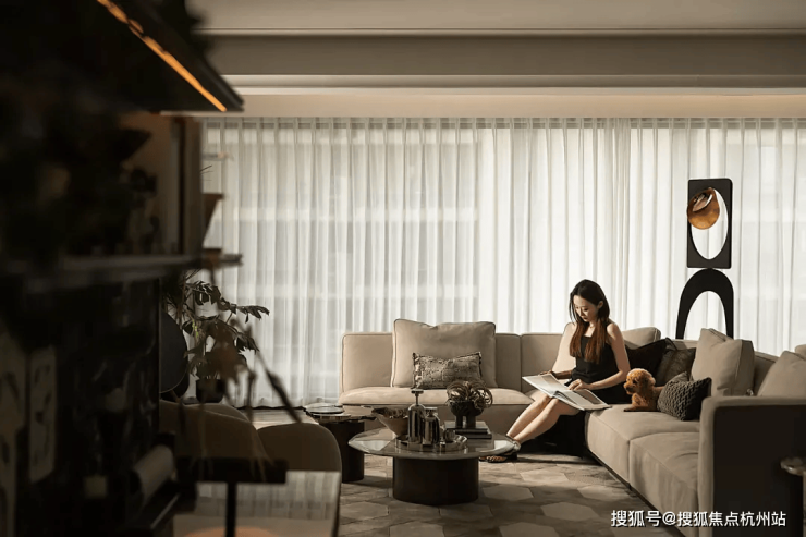 旁边半围合的室外会客厅,「长」在水庭中央;下沉式会客卡座,可以享受独处时光,也可以和邻居友人聊聊时事财经。