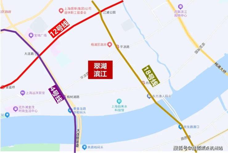 交通方面, 周边1公里内有多条轨道交通,东侧约400米有18号线平凉路站,西侧约700米是4号线杨树浦路站,西北侧1公里为4、12号线大连路站。地块到东外滩滨江的直线距离约580米。