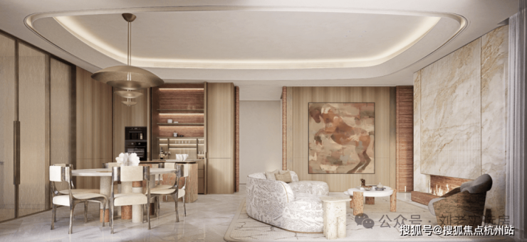 象屿·天誉蘭香绝不是只有材料的对切,项目借鉴经典,将历经时间考验的优雅形态,转化为更符合当代高知群体生活习惯的实用空间。