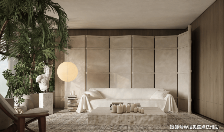 会所环绕着中心水苑展开,泳池、健身、瑜伽、私宴与茶室都被包裹在其中;连地下空间也被赋予自然的渗透,约30米面景的中央车站大厅,将光与绿意引入地库,让归家像步入一座埋入自然的殿堂。